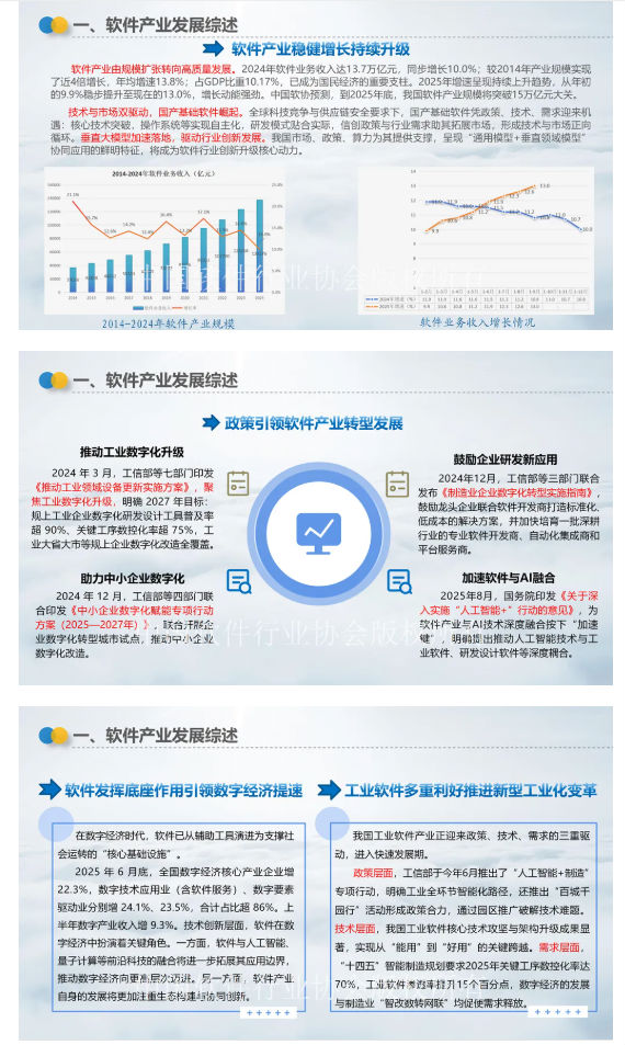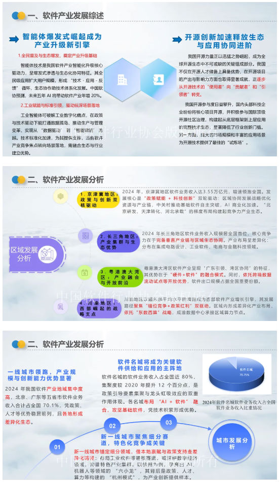 《报告》指出,我国软件产业正经历从规模扩张向质量提升的关键跃迁,成为数字经济发展的核心驱动力。在国产基础软件崛起与垂直大模型落地的双轮驱动下,产业结构持续优化,迈入价值深耕的新阶段。同时,智能体技术的爆发式渗透与开源生态的加速繁荣,进一步筑牢了产业智能化根基,推动技术创新从单点突破向体系化演进。