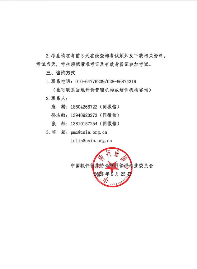 关于开展软件项目管理专业人士(SPMP)能力评价2025年第四次考试的通知