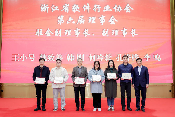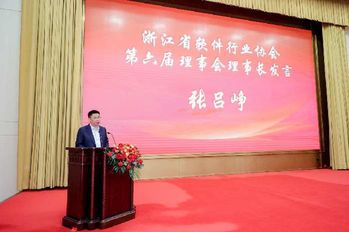 最后,新任理事长张吕峥发表履职讲话。张吕峥理事长指出,过去五年,协会通过党建引领、聚焦主责主业、搭建交流平台、当好政府参谋,取得了扎实成果;展望未来,新一届理事会将秉承“服务、创新、合作、共赢”理念,持续深化政企桥梁作用,推动核心技术攻关与新兴技术融合应用,助力浙江软件产业迈向更高水平、更广领域、更强竞争力。
