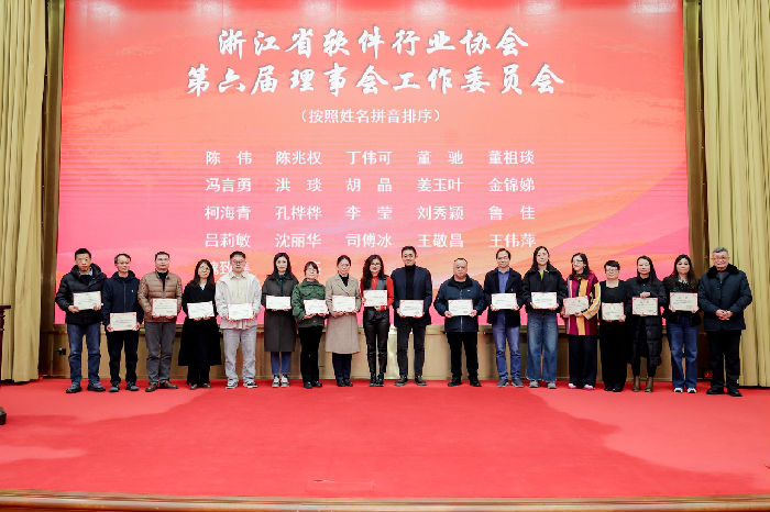 大会第二阶段,召开第六届理事会第一次会议和第六届监事会第一次会议。通过投票选举,创业慧康科技股份有限公司董事长张吕峥当选为理事长,阿里云计算有限公司战略发展部总经理李鸣等19人当选为副理事长,杭州安恒信息技术股份有限公司董事长范渊等32人当选为常务理事,杨岚当选为秘书长,吴本林当选为监事长。会议审议并表决通过浙江省软件行业协会第四、第五届秘书长、浙江工业大学计算机学院校企合作负责人王小号担任驻会副理事长,浙江工业大学计算机学院、软件学院教授蔡家楣担任名誉理事长,并通过了专家委员会、工作委员会、协会副秘书长、项目管理专业委员会、人工智能人才发展专业委员会聘用名单。此外,为优化组织架构、整合专业资源,大会决定撤销“质量管理经理专业委员会”。
