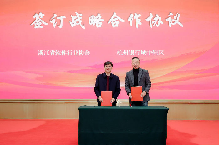 协会秘书长王小号与杭州银行城中辖区行行长杨轶华签署战略合作协议,推出面向软件企业的专属综合金融服务,进一步强化产业支撑能力。杭州银行总行公司金融部副总经理沈栋钱介绍了面向软件企业的特色金融服务。