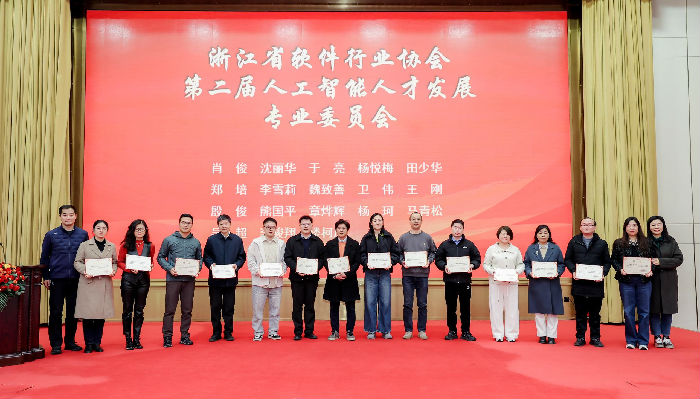 此外,协会第六届理事会秘书长杨岚上台发布了《2025年浙江省软件行业协会先进工作者名单》,并进行了颁奖仪式;驻会副理事长王小号发布了《2025年浙江省软件企业核心竞争力评价结果》;专家委员会副主任委员万健教授发布了《2025年长三角百家品牌软件企业(浙江)名单》。